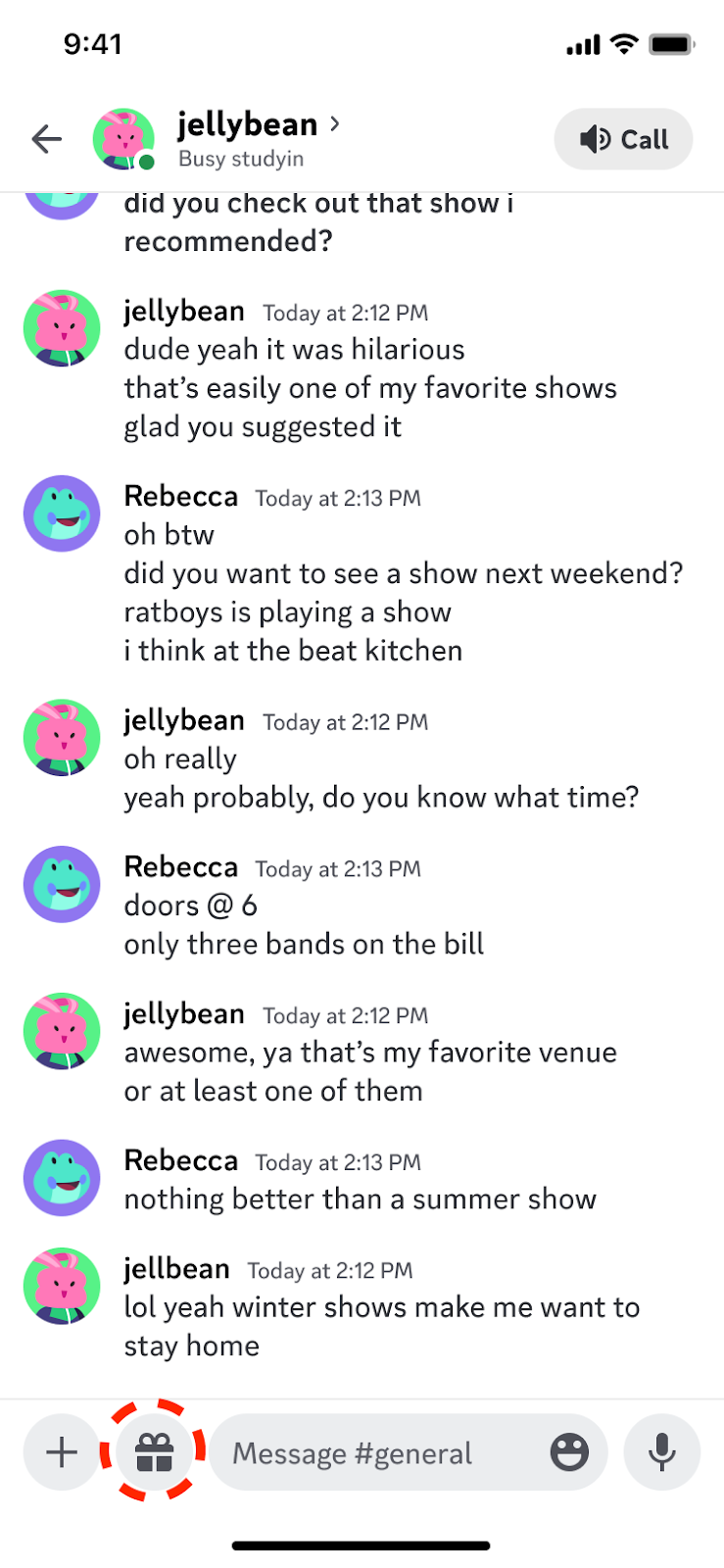 1. Per cominciare, apri l'app Discord e naviga dove desideri inviare il regalo.
