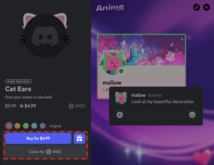 3. 상점에 가면 아바타 장식, 프로필 효과, 이름표 등을 미리 보고 구매하여 컬렉션에 추가할 수 있어요!